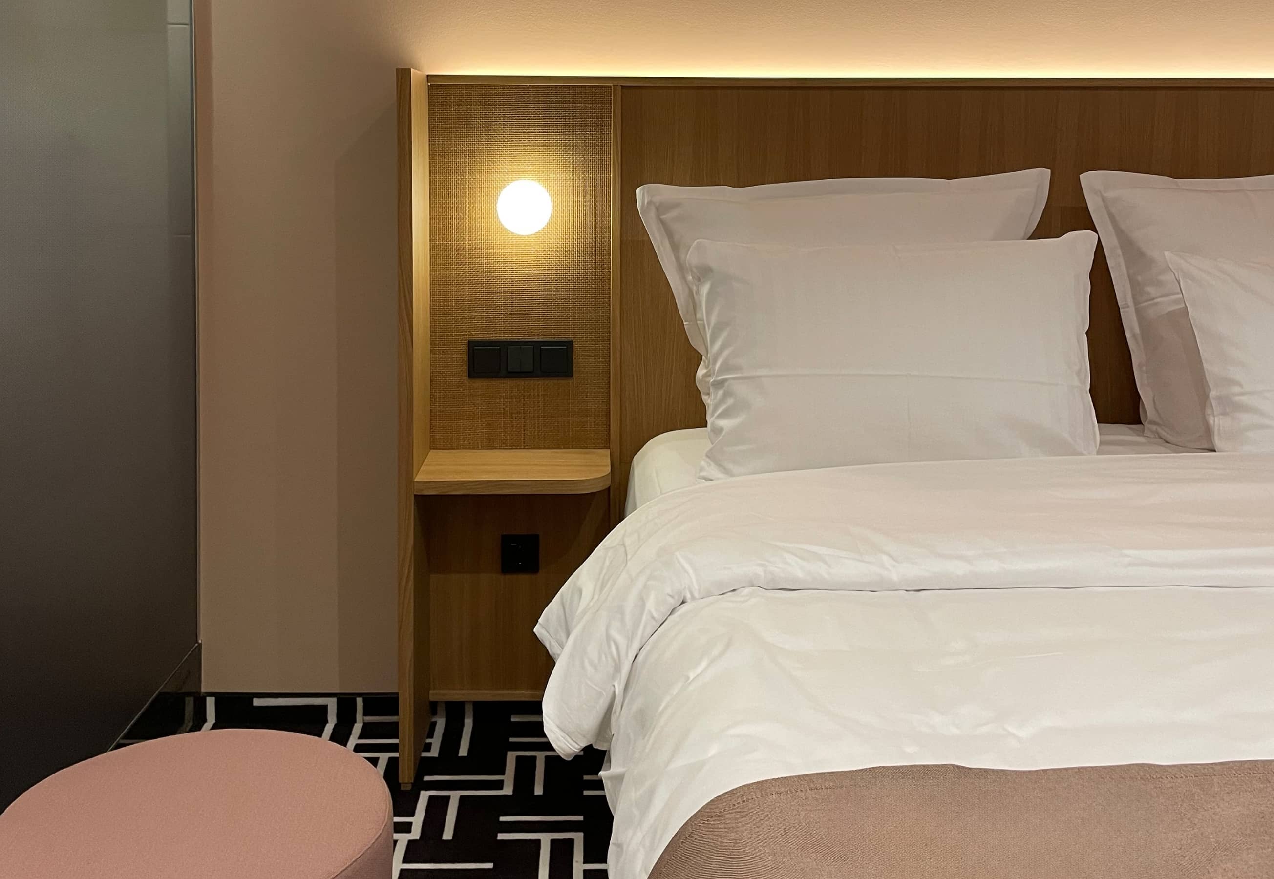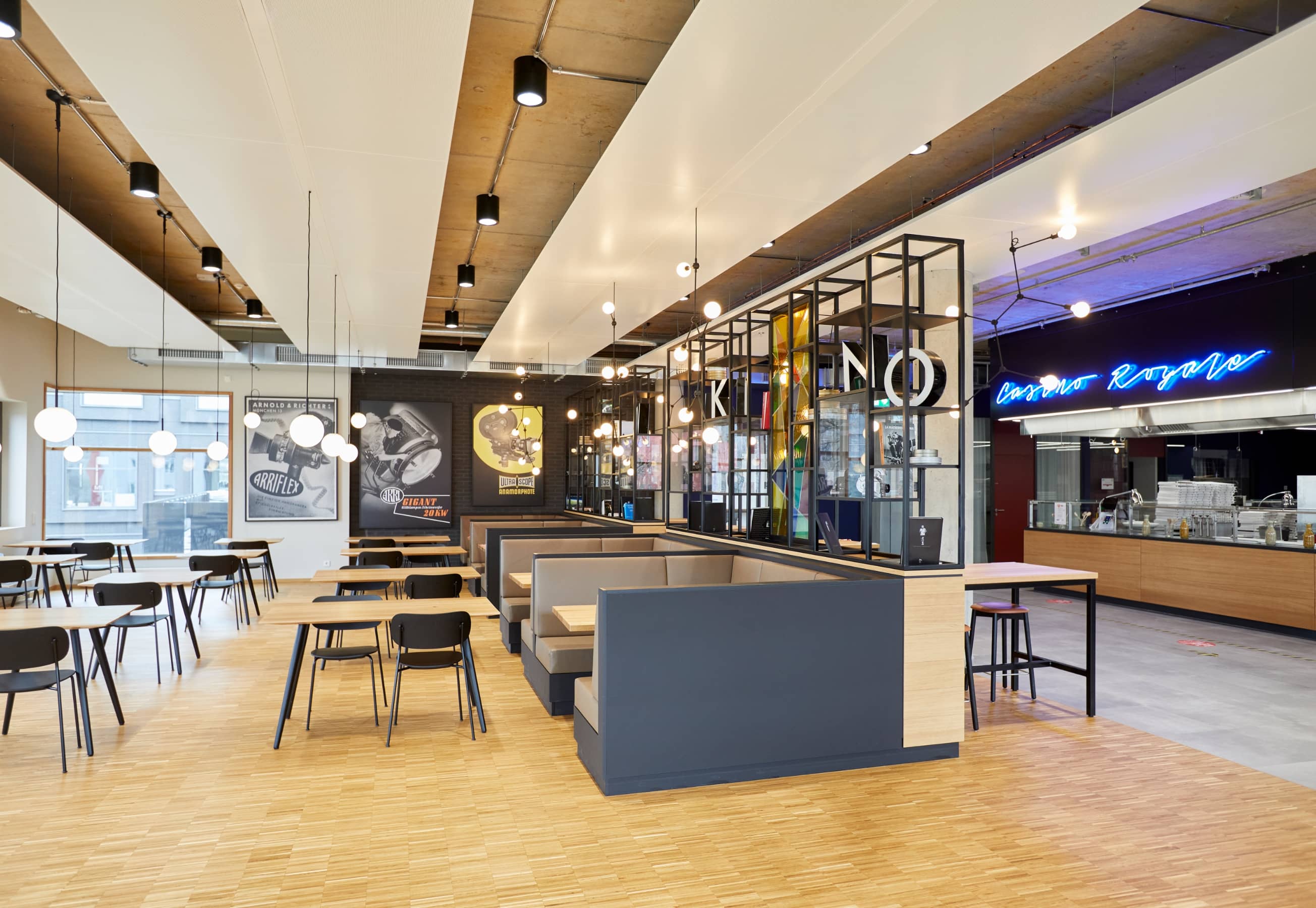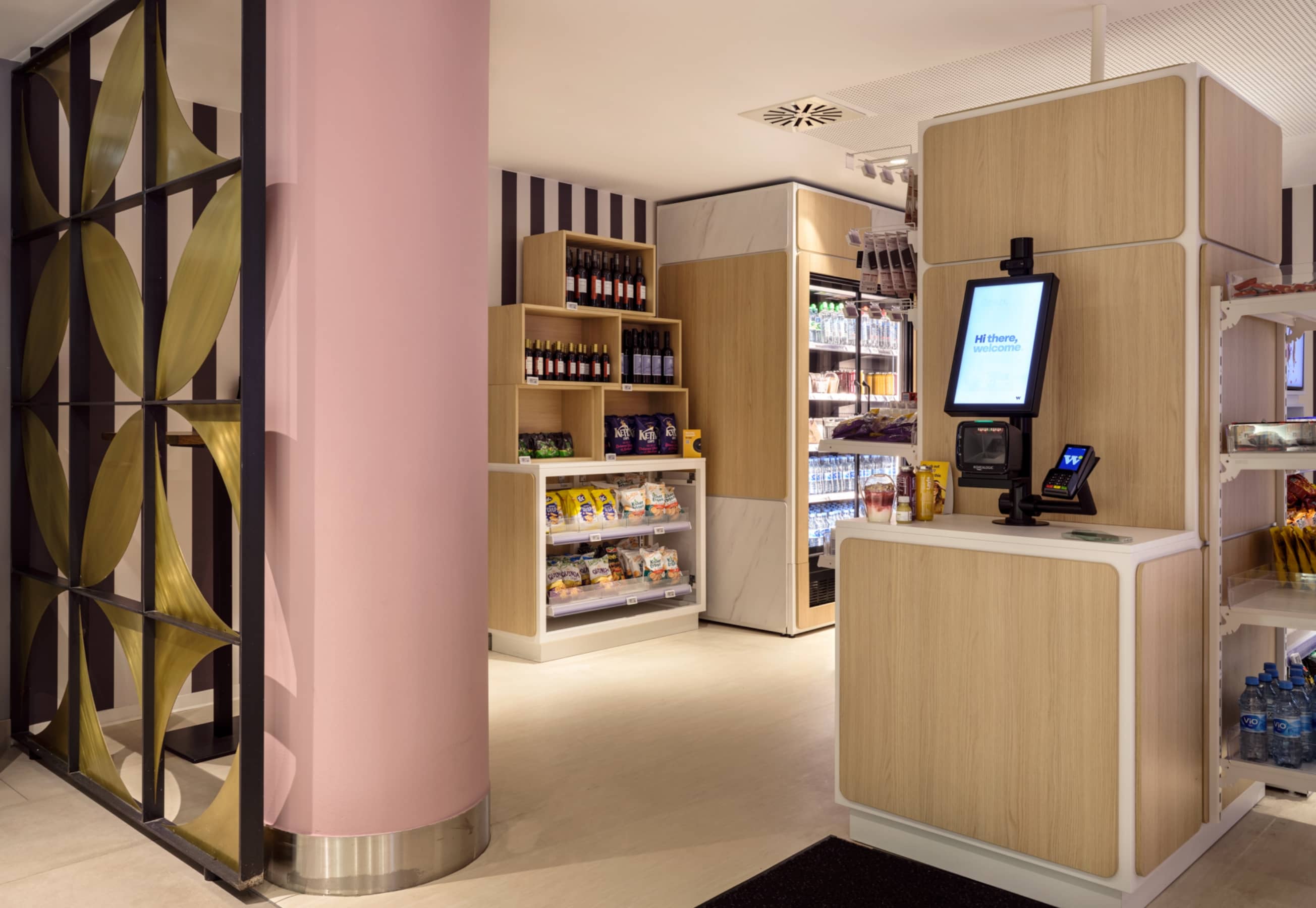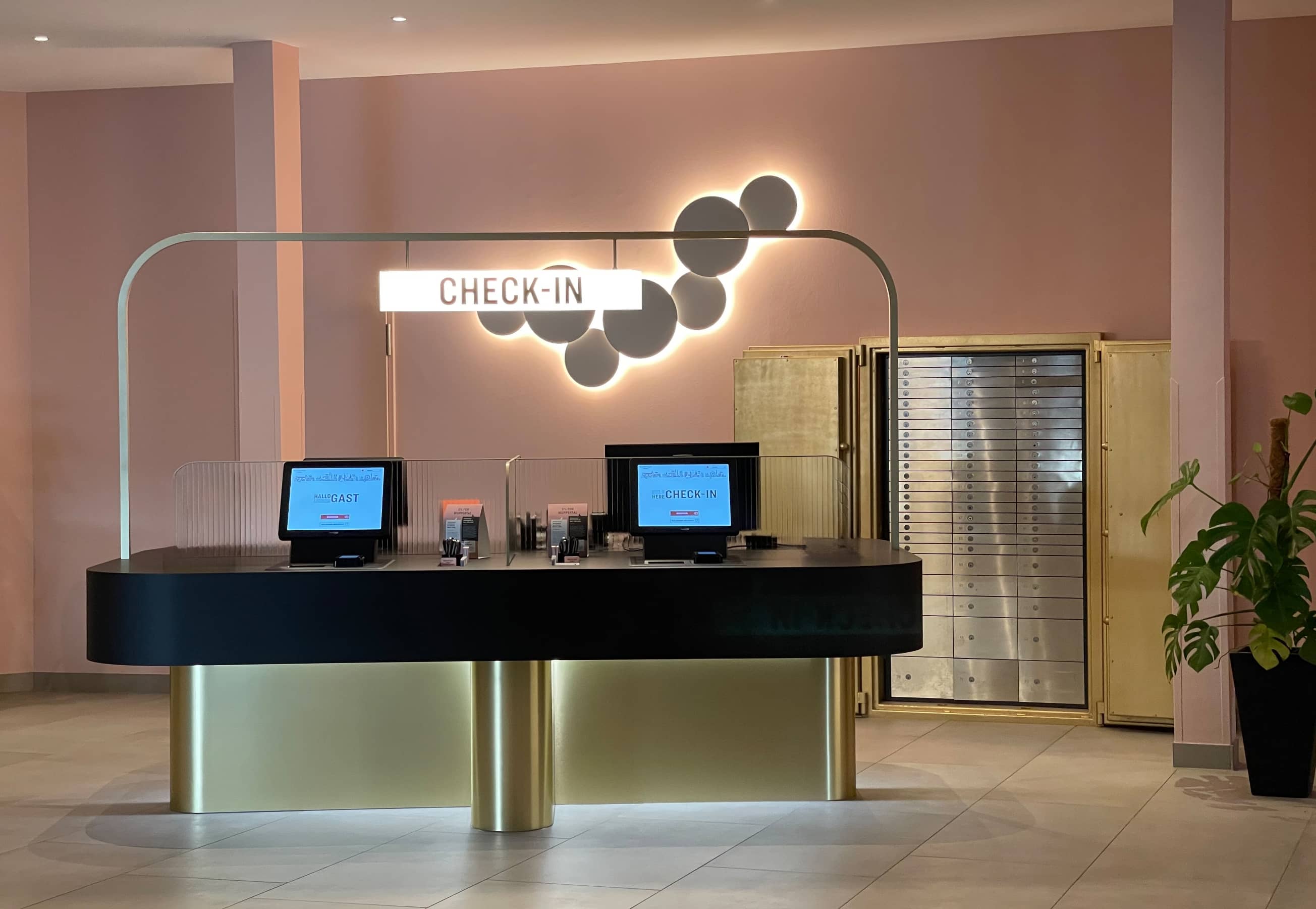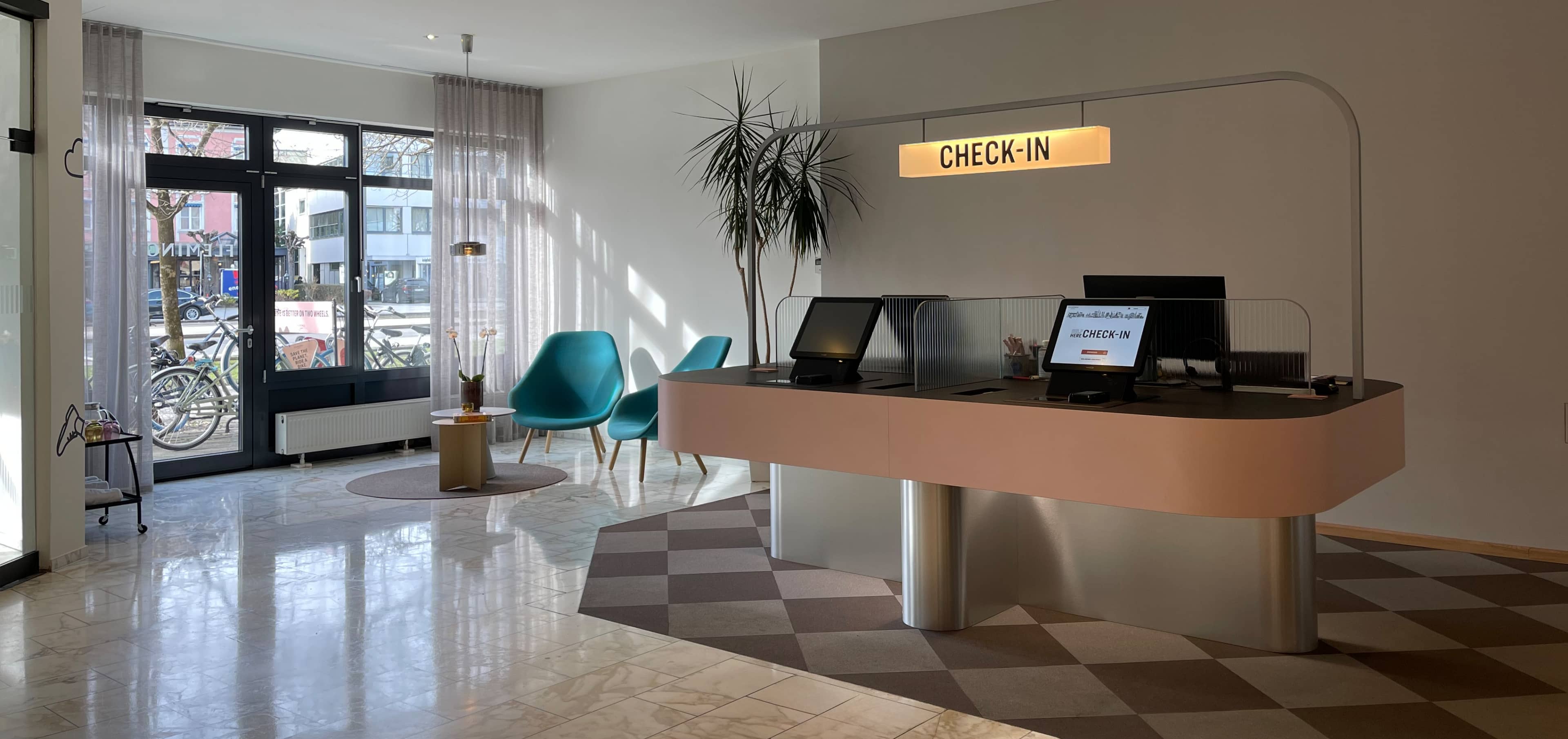 Nach sechs Jahren Betrieb erhielt das Meininger Hotel am Olympiapark ein frisches Upgrade: Im Erdgeschoss wurden Rezeption und Bar zusammengeführt, ergänzt um Kofferlager, Gepäckraum und einen kleinen Shop. Auch Buffet und Frühstücksbereich wurden modernisiert. Urban Dynamics und der Olympiapark inspirierten das neue Design – mit viel Bestand, wenig Aufwand und punktgenauer Umsetzung im Budget und Zeitplan. Im brandschutzklassifizierten Foyer gelang durch einen einfachen Kunstgriff dennoch ein starker gestalterischer Effekt: Außen aufgebrachte Folien bringen nun Farbe und Licht ins Spiel.